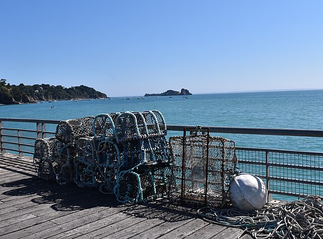 In 2025, there were around 3 million traps of all sorts that connected to boats via ropes along the coastline of Maine. Most of these stay in shallow waters undersea between 20 and 30 feet deep. The top has a funnel design with netting through which lobster enter. They also have release hatches for any lobster measuring below the legal 3 1/4 inches or above 5 inches long.